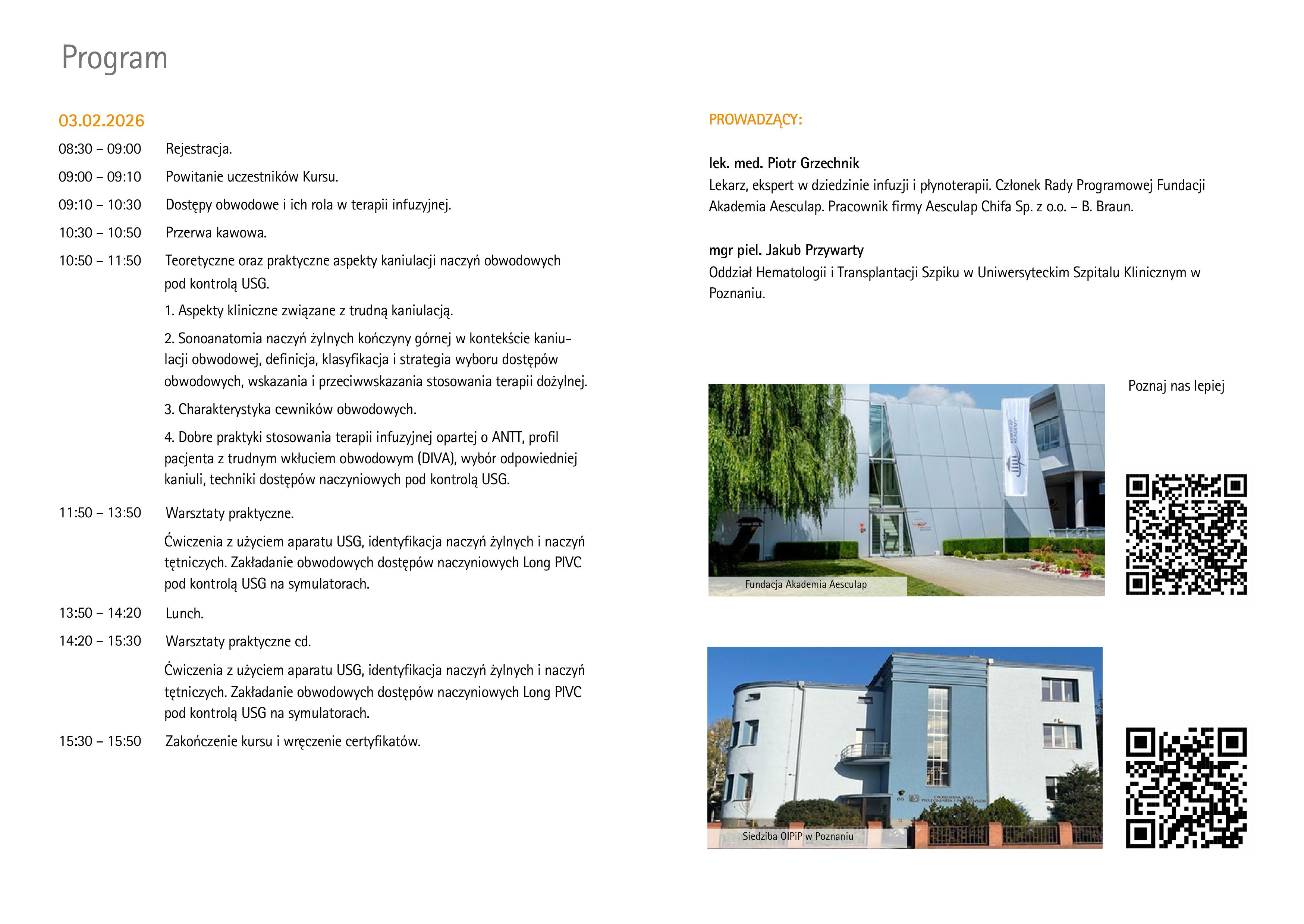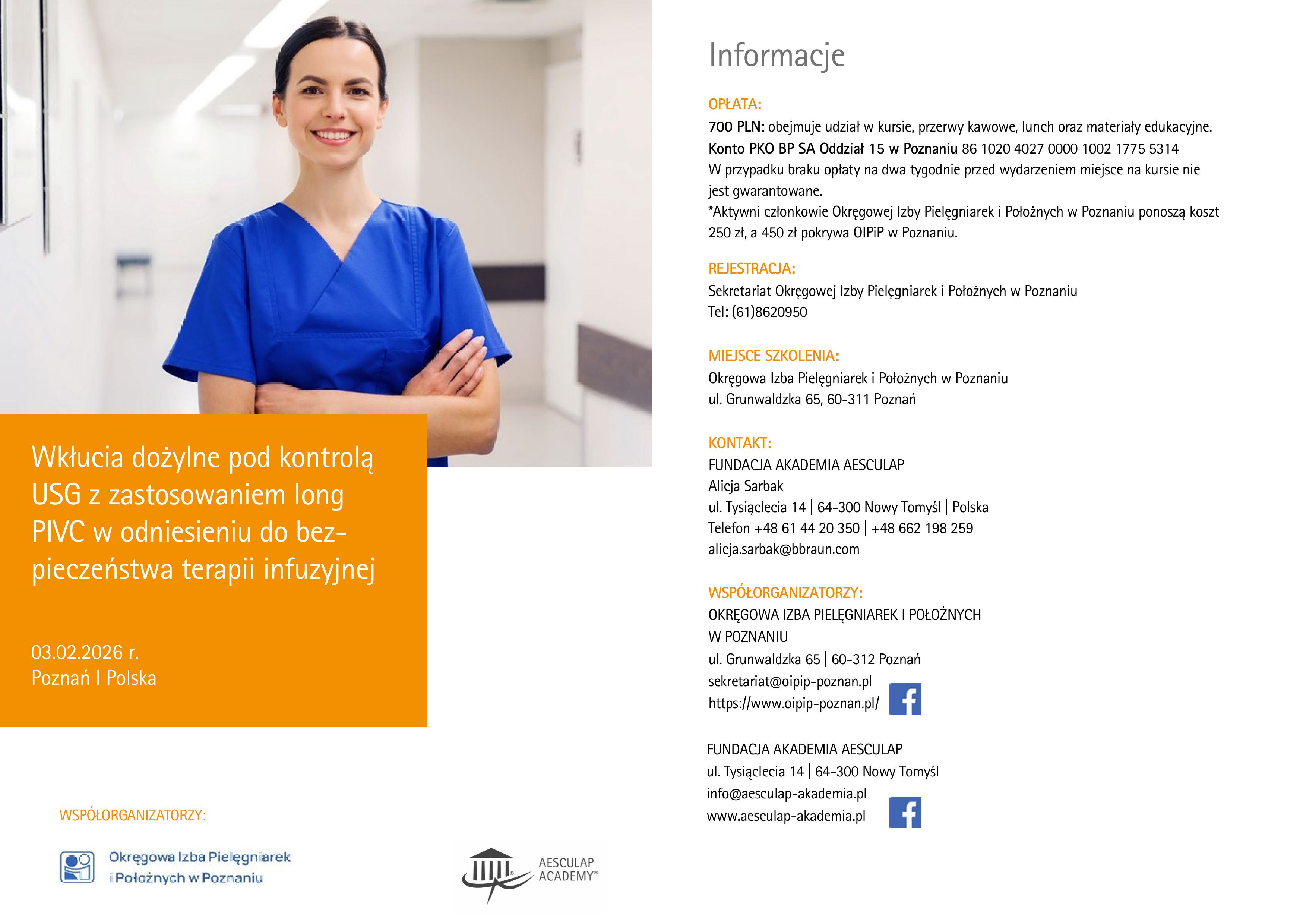 Zapraszamy do udziału w kolejnych edycjach kursu pt. "Wkłucia dożylne pod kontrolą USG z zastosowaniem long PIVC w odniesieniu do bezpieczeństwa terapii infuzyjnej":