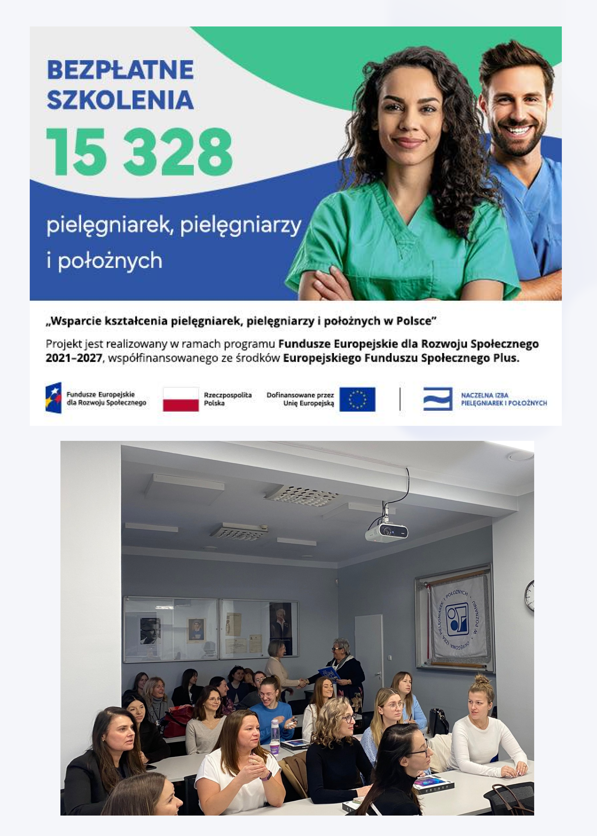Zakończenie kursu specjalistycznego „Diagnostyka ultrasonograficzna w położnictwie i ginekologii" dla położnych, PROJEKT WSPARCIE KSZTAŁCENIA PIELĘGNIAREK, PIELĘGNIARZY I POŁOŻNYCH W POLSCE” WSPÓŁFINANSOWANY ZE ŚRODKÓW EFS PLUS