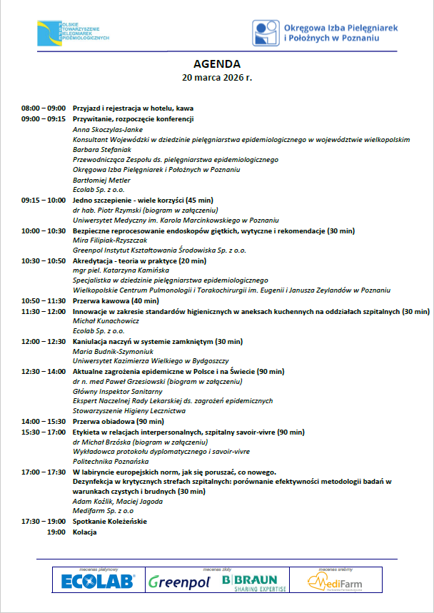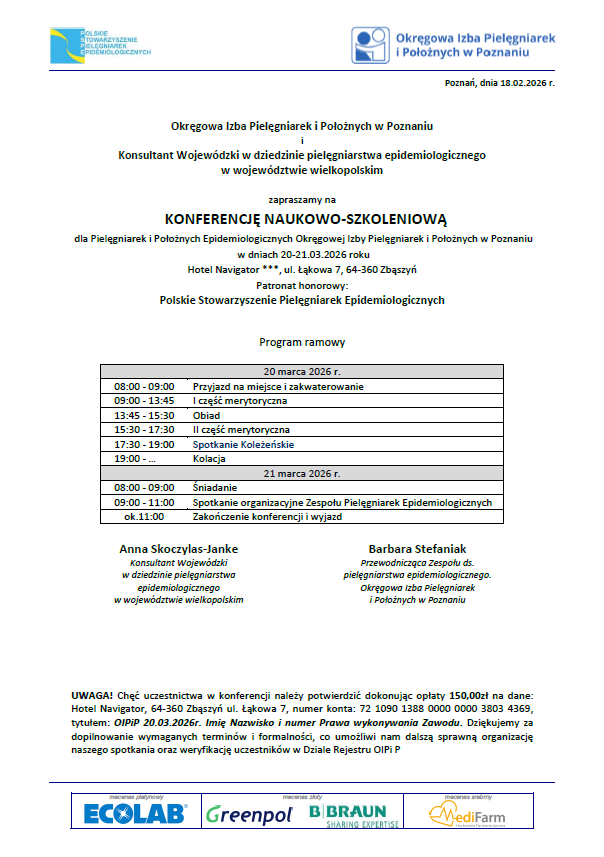dla Pielęgniarek i Położnych Epidemiologicznych Okręgowej Izby Pielęgniarek i Położnych w Poznaniu